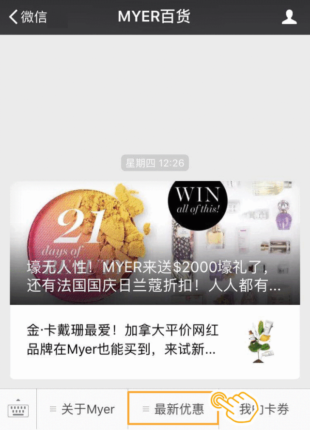 进入MYER微信公众号菜单栏