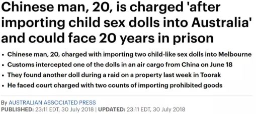 去年,悉尼一华人因在网上购买了一个超级逼真的儿童版充气娃娃,