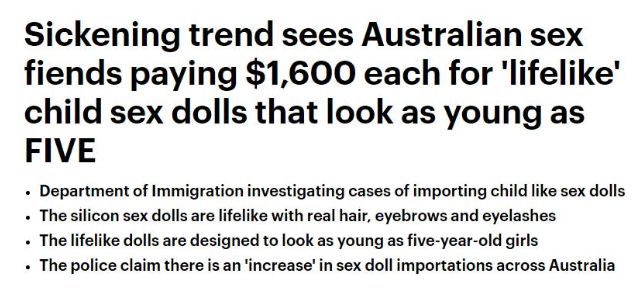 从国外进口儿童性爱娃娃以及其他儿童剥削(child exploitation)类物品,是澳洲边防局重点关注的一个问题。