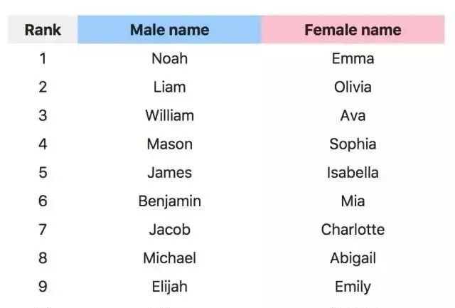 这里是2017年澳洲官方名字统计最受欢迎前九名的名字,可以参考一下: