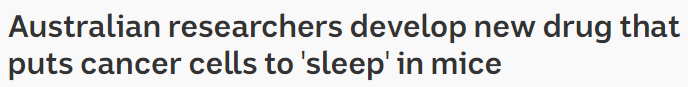 澳洲抗癌里程碑式进展!澳研究人员开发出新药,可使动物体内的癌细胞进入永久休眠状态!且没有任何副作用!