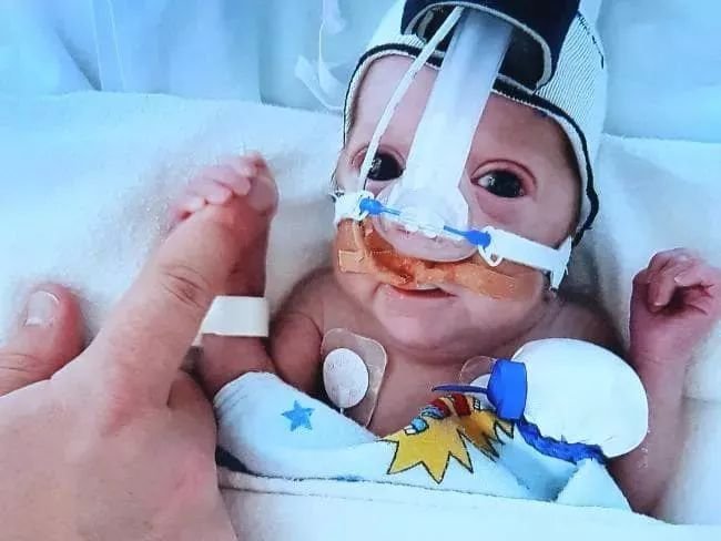 如今16个月大的Harry Campbell就是一名早产儿,他出生时只有27周大,体重仅730克,还不到两斤重,身长不及医生的一个手掌大。