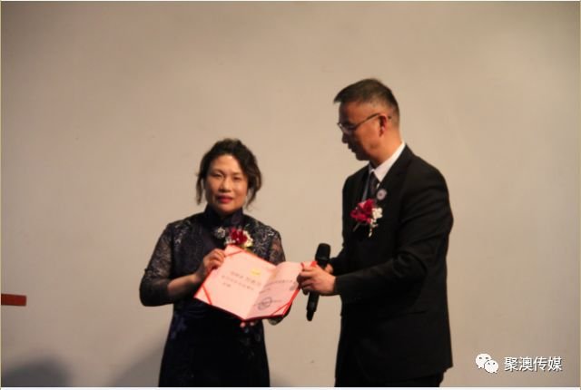 之后,苏俊希女士为金华同乡会胡伟会长颁发聘书。