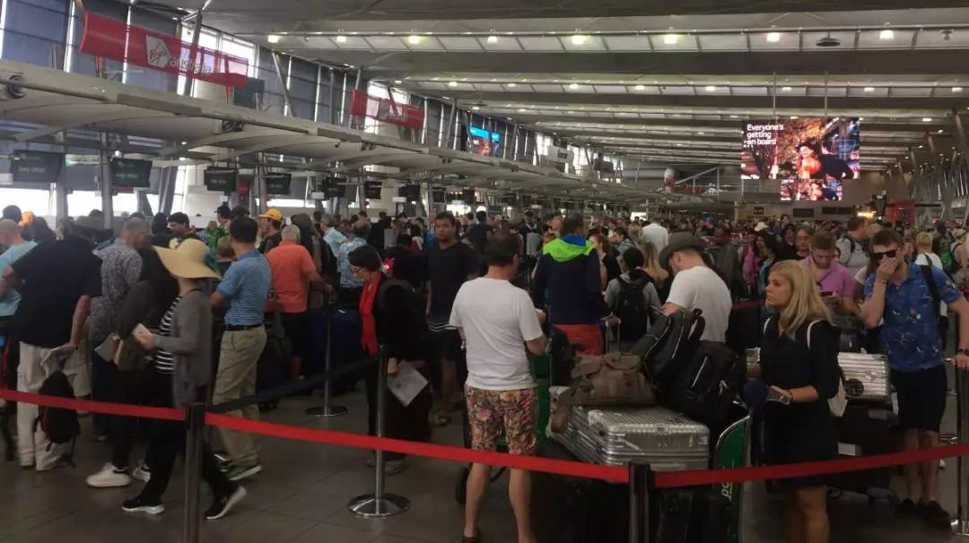 check-in的队伍长的都快冒出机场了!