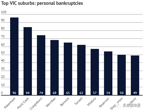 布莱预计,随着房地产市场的进一步下滑,新州甚至墨尔本的个人破产数量或将上升。“在消费水平上升的情况下,澳洲有几个地区都该亮红灯了。”他说,“由于墨尔本房市已显现出下滑的迹象,18-19[财]年,该市可能会面临个人破产涨幅扩大的情况。”