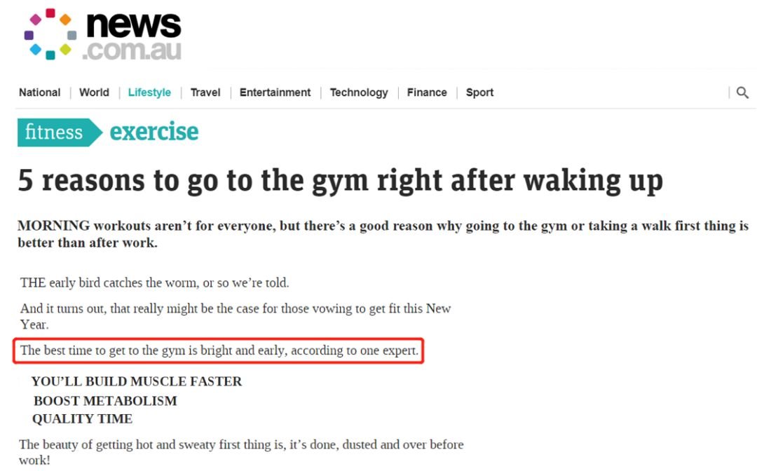 据news.au 报道,健康专家指出,每天去健身房锻炼的最佳时间其实是清晨。